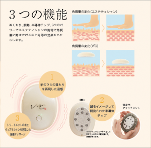 ぬくもり(手のひらの温もりを再現した温感)、振動(トリートメントの手技ヴィブラシオンを再現した振動マッサージ)、半導体チップ(※ゲルマニウムローラーとして300万人の方にご愛用頂いた実績があります。)、3つのパワーでエステティシャンの施術で